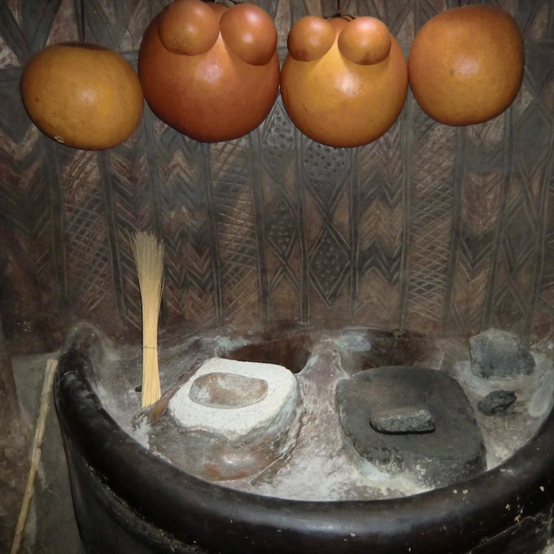 Wohn-Küche mit Gewölbe in Lehmtrockenbau mit Lehmwandheizung