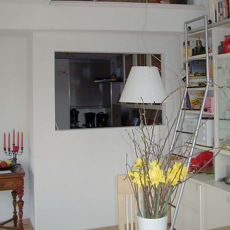 Wohn-Küche mit Gewölbe in Lehmtrockenbau mit Lehmwandheizung