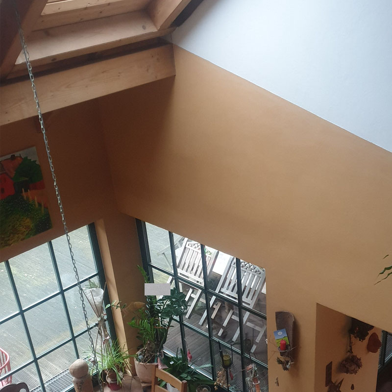 Rapidolehm Lehmstreichputz lässt sich ganz einfach mit Rolle, Pinsel oder Glättkelle auftragen. Mischen Sie für zusammenhängende Flächen immer ausreichend Putz in einer Charge an, es muss während der Arbeit und der Trocknungsphase Frostfreiheit gewährleistet werden.